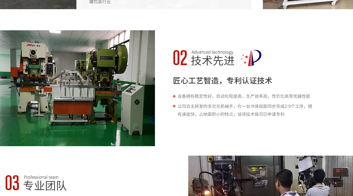 東莞市勝賢機(jī)械設(shè)備有限公司,是一家專業(yè)從事金屬制罐包裝行業(yè)的整套自動(dòng)化設(shè)備和模具開(kāi)發(fā)、制造與銷售的公司,擁有成熟的技術(shù)和創(chuàng)新開(kāi)發(fā)能力。我們擁有有一批多年從事設(shè)計(jì)、研究開(kāi)發(fā)的工程師,和設(shè)備、模具制作的技術(shù)人才。不斷推進(jìn)制罐行業(yè)向高效、環(huán)保、節(jié)能、操作簡(jiǎn)易化的方向發(fā)展。 公司主要產(chǎn)品:多次元機(jī)械手設(shè)備生產(chǎn):含片盒蓋/底自動(dòng)生產(chǎn)線,煙盒蓋/底自動(dòng)生產(chǎn)線,醫(yī)藥盒蓋/底自動(dòng)生產(chǎn)線,茶葉罐蓋圈/酒罐蓋圈自動(dòng)生產(chǎn)線,酒罐蓋自動(dòng)生產(chǎn)線、茶葉罐拍底自動(dòng)生產(chǎn)線等等。 罐身自動(dòng)扣骨機(jī)生產(chǎn):茶葉罐/酒罐/化妝品罐/內(nèi)衣罐等等. 其中多次元機(jī)械手專為兩片盒的生產(chǎn)和三片罐的蓋、底、蓋圈、拍底蓋等的生產(chǎn)而設(shè)計(jì),...